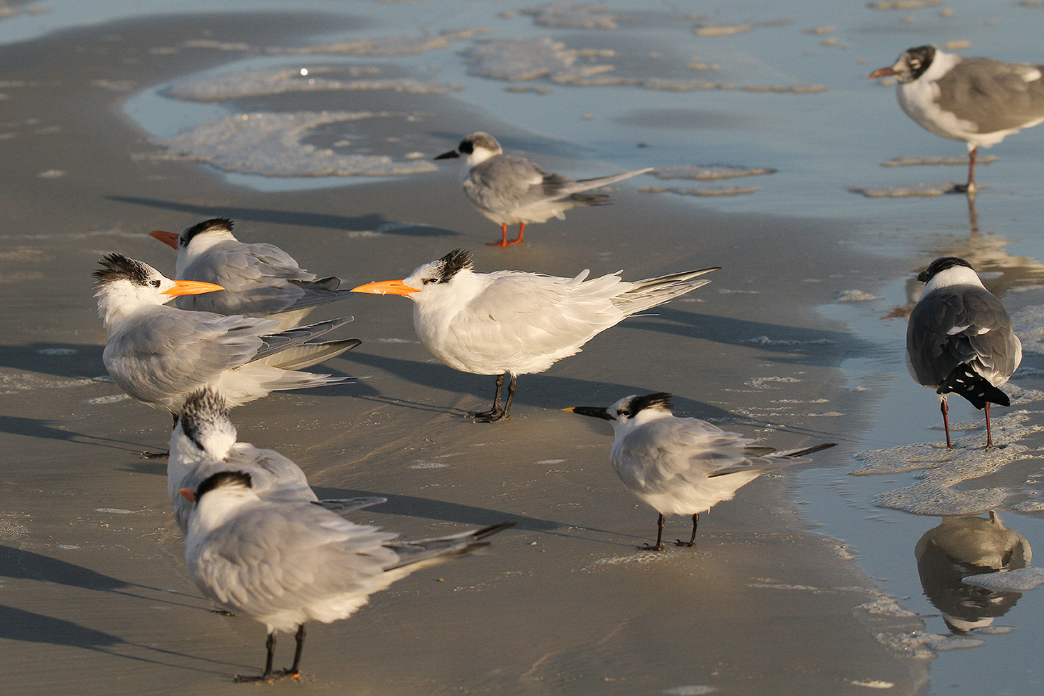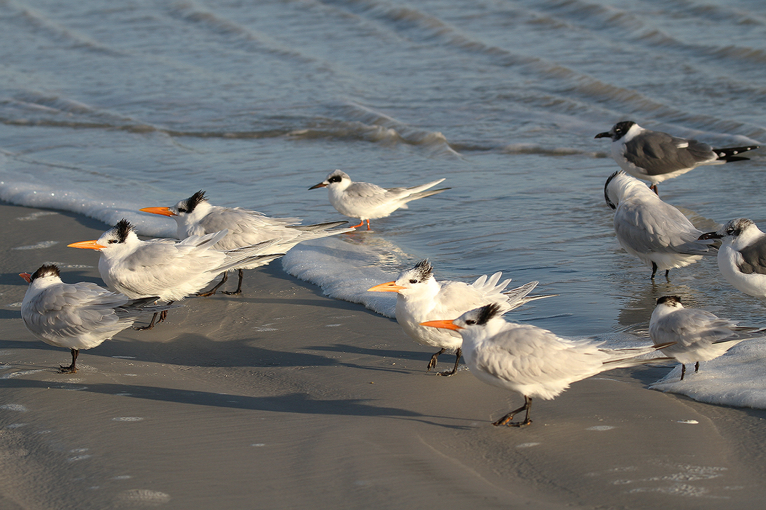 Royal Tern, Sandwich Tern, Forster's Tern, Laughing Gull, Ring-billed Gull, American Herring Gull, Willet