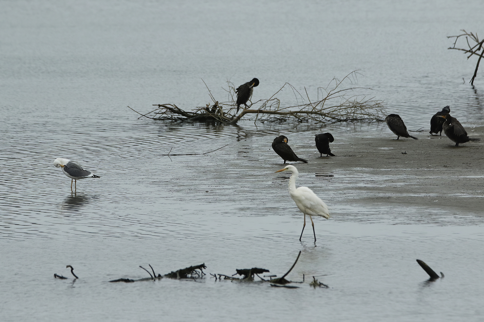 Lesser Black-backed Gull [줄무늬노랑발갈매기] / Great Cormorant [민물가마우지] / Great Egret [중대백로]