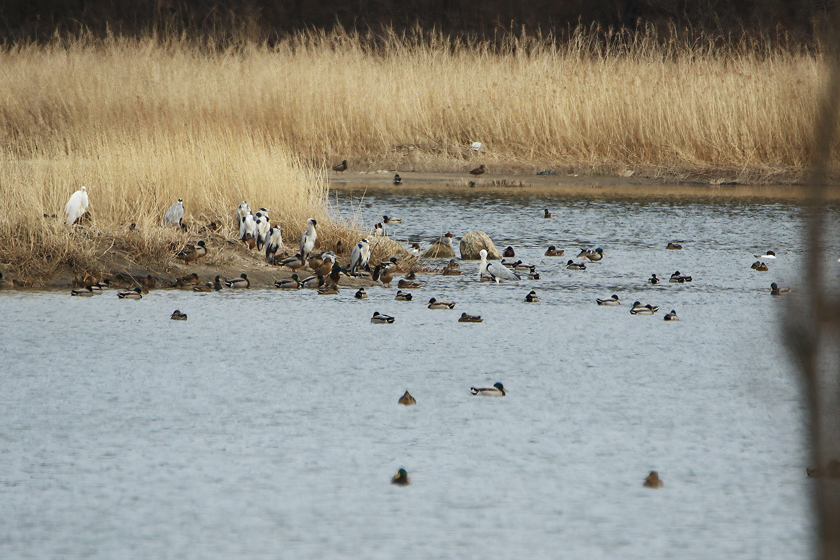 Grey Heron [왜가리] / Mallard [청둥오리] / Eastern Spot-billed Duck [흰뺨검둥오리]