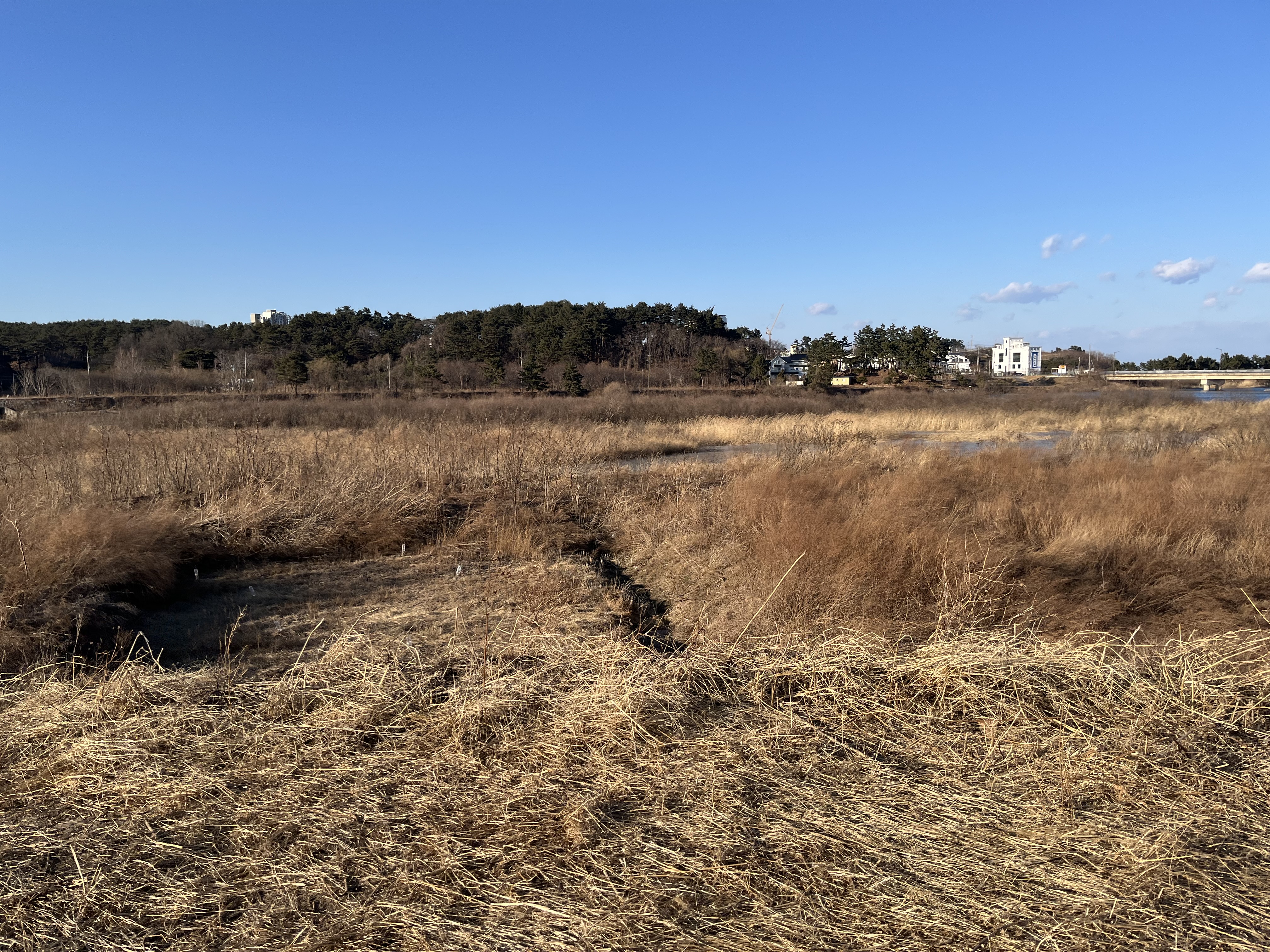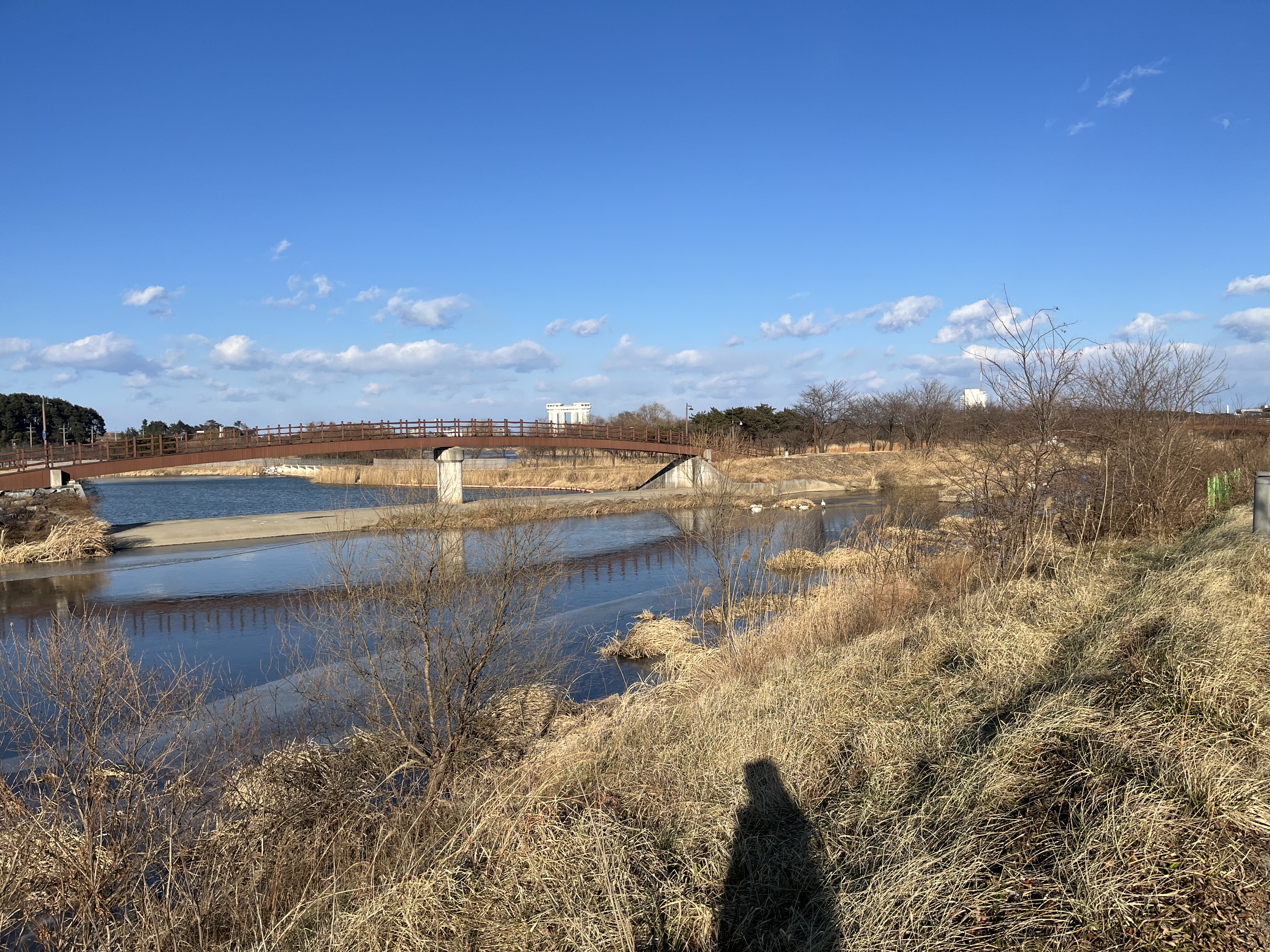 집에서 경포천의 운정교 까지는 차로 5분 거리다. 가족 단위겠지 네 모둠으로 모여 다닌다. 전체 스물한 마리 큰고니가 있다. 풀뿌리를 뽑아 먹기도 하고 몇몇은 머리를 등 뒤에 올려두고 쉬고 있다. 지나는 사람과 관찰하는 나까지도 무시한다. 긴박한 상황이겠지 먹어야 산다. 주변에 쉬고 먹을 수 있는 장소가 별로 없다. 결빙된 곳이 대부분이라 아직 조금만 얼어 있는 이곳이 제일 적당해 보인다. 강릉엔 고니류가 겨울을 지내는 곳이 몇 곳 있다. 그곳들 중에 이곳이 젤 사람의 간섭이 많은 곳인데 자주 이곳에 머문다. 이유가 있겠지만 나로서는 알 수 없다. 잠시 보고 있는데 탐조를 하는 가족이 온다. 아이와 부모, 카메라와 쌍안경을 가지고 있는 것으로 보아 꽤 자주 다니고 있나 보다. 하늘에 말똥가리와 큰말똥가리가 신경전을 벌이고 잠시 후 흰꼬리수리도 그 하늘의 공기를 호흡한다. 나와 같은 공기를 마시는 새와 사람들.