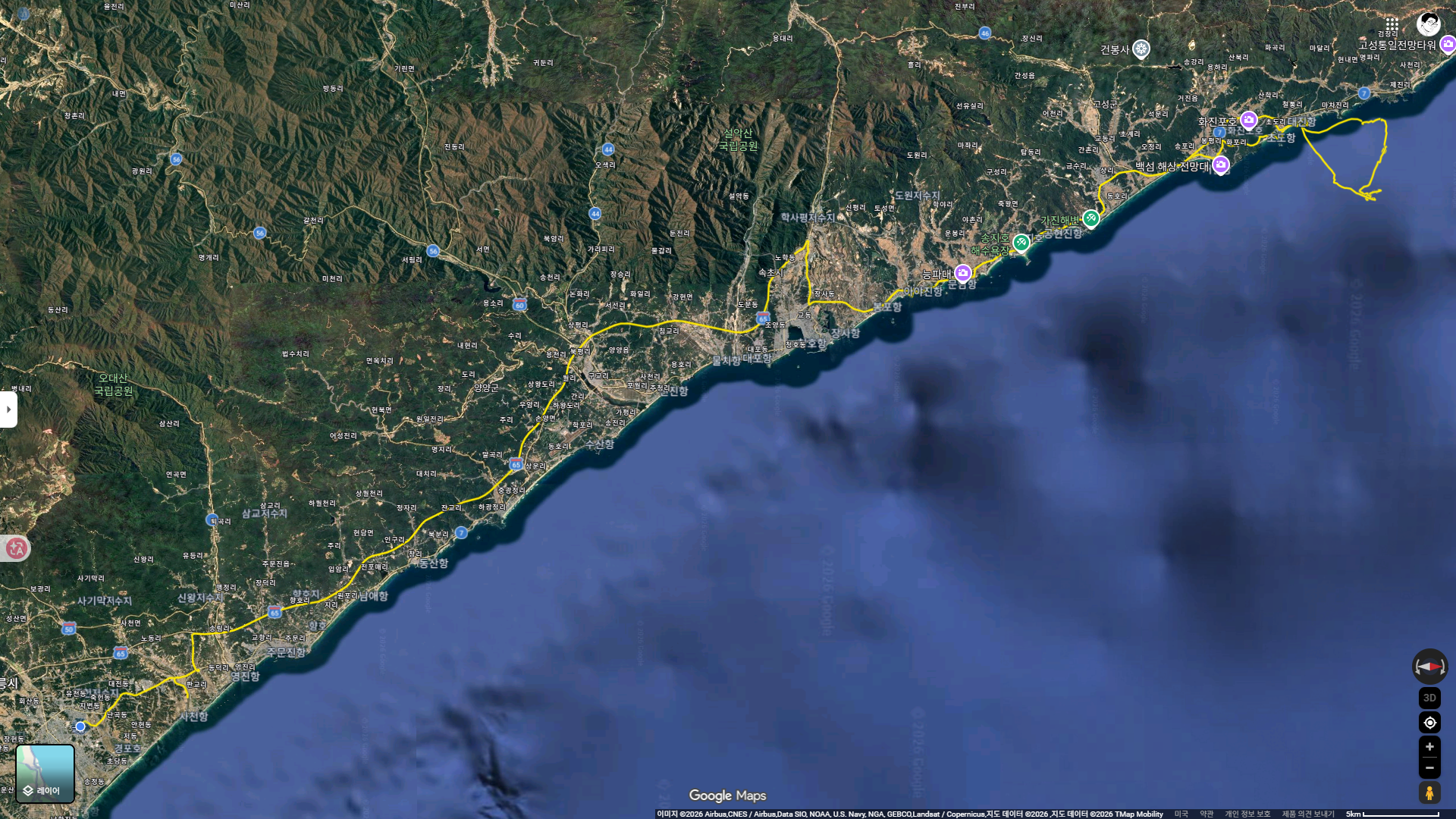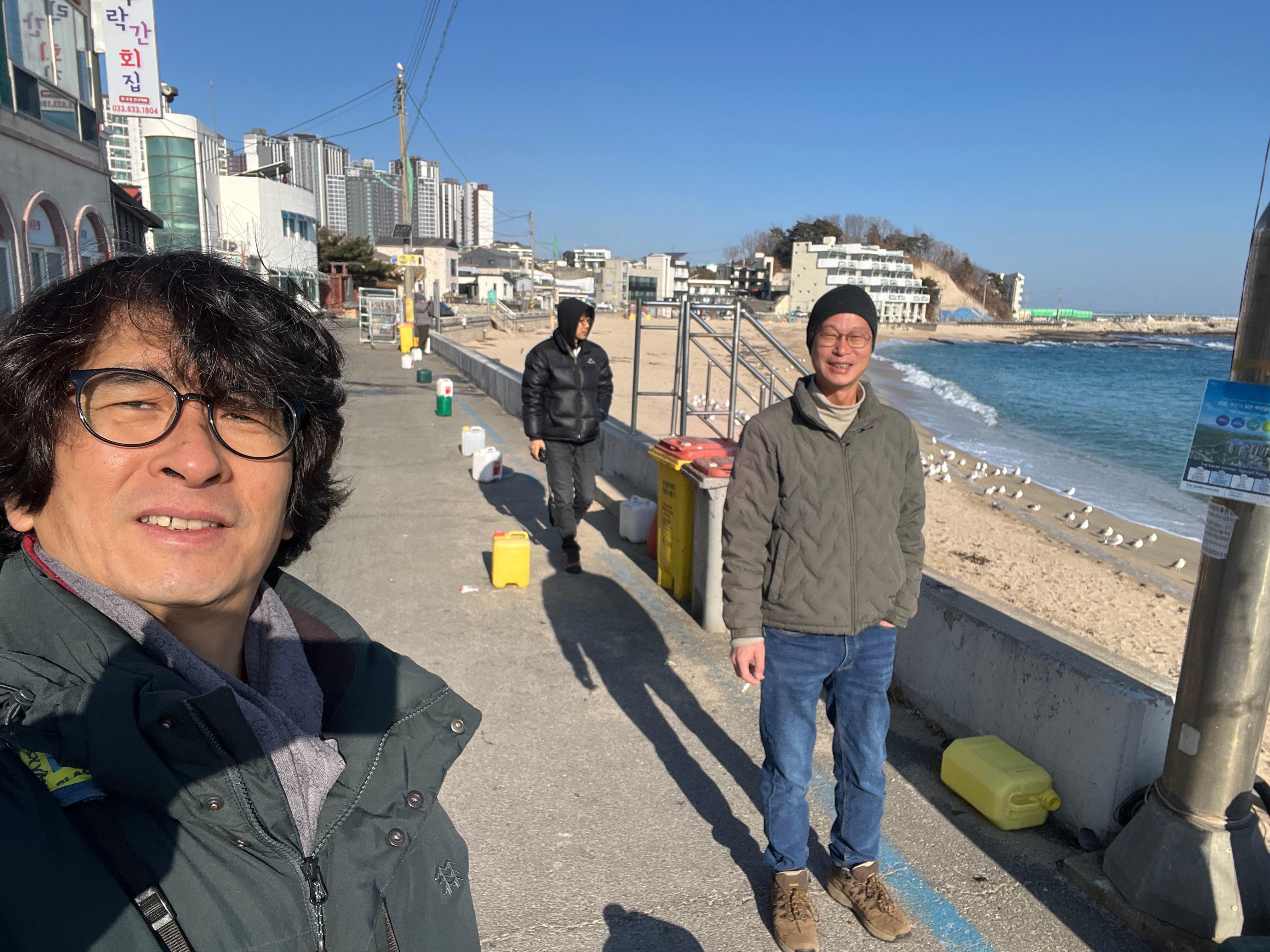 새로운 친구를 만든다는 것이 얼마나 행복한 일이겠는가! 새를 만나러 다니다 만나는 사람들과 지속되는 관계를 만드는 것은 서로의 노력이 있어야 하는 것은 당연하겠지만 나의 경우엔 내 노력보다 새친구들의 노력이 더 있는 것 같아 미안할 정도이다. 오늘은 그렇게 새를 보다 만난 사람 Sung 박사와 새를 만나러 나가는 날이다. 얼마 전 그는 여러 사람과 동해안 선상 탐조를 계획하였으나 바다 날씨가 좋지 않아 계속 미루어져 해를 넘기고서야 가능해지며 나도 갈 기회가 생겼다. 챙겨준 것인데 고마움을 전하지 못했다. 그는 서울에서 새벽에 출발하여 강릉까지 와 나를 태우러 온다. 그가 오기를 기다리며 마실 커피를 내려 보온병에 담고 Sung 박사와 함께 온 권 선생과 셋이 잠시 사천천을 둘러보고 북강릉IC로 고속도로를 달려 아야진으로 간다.