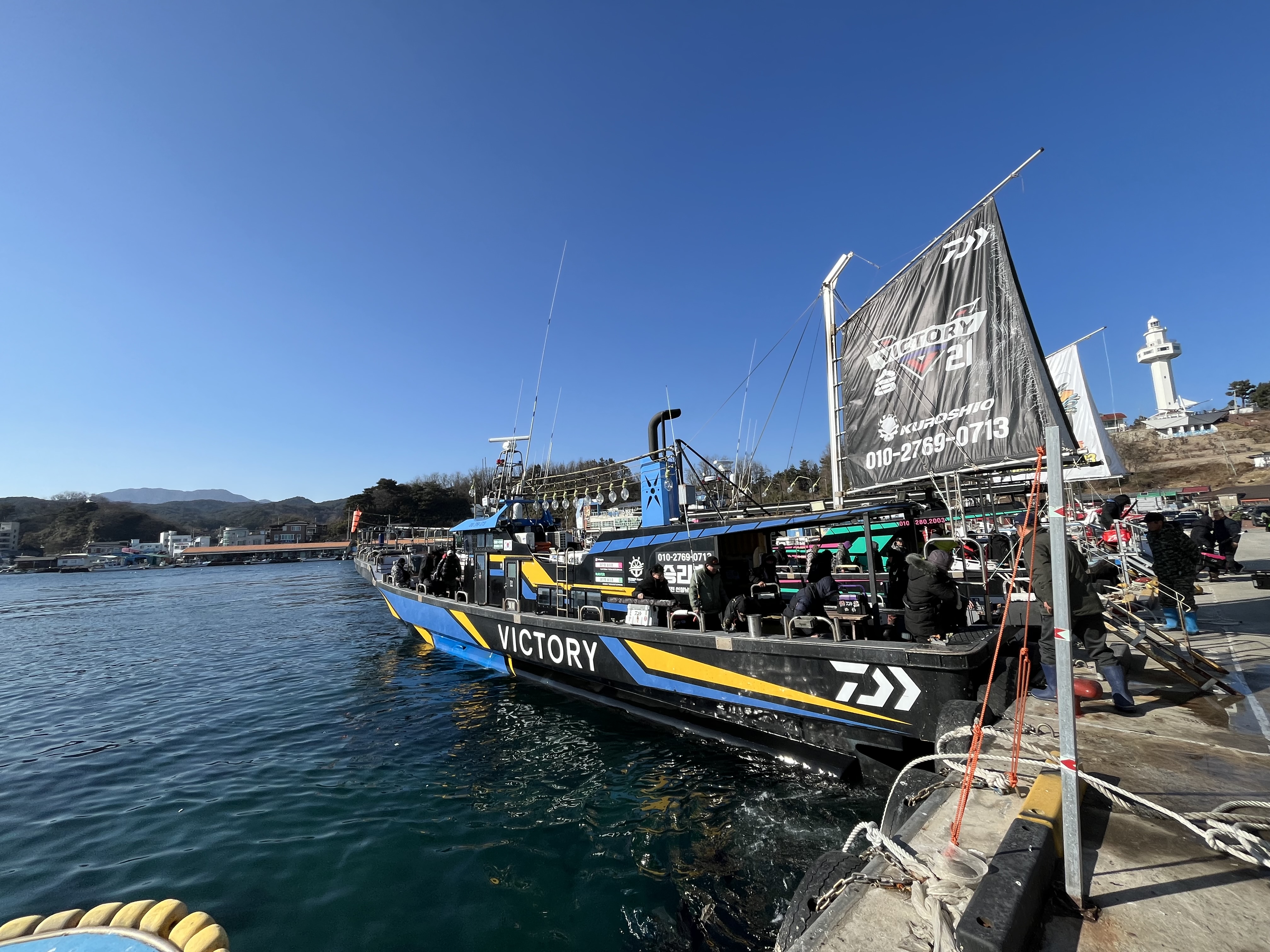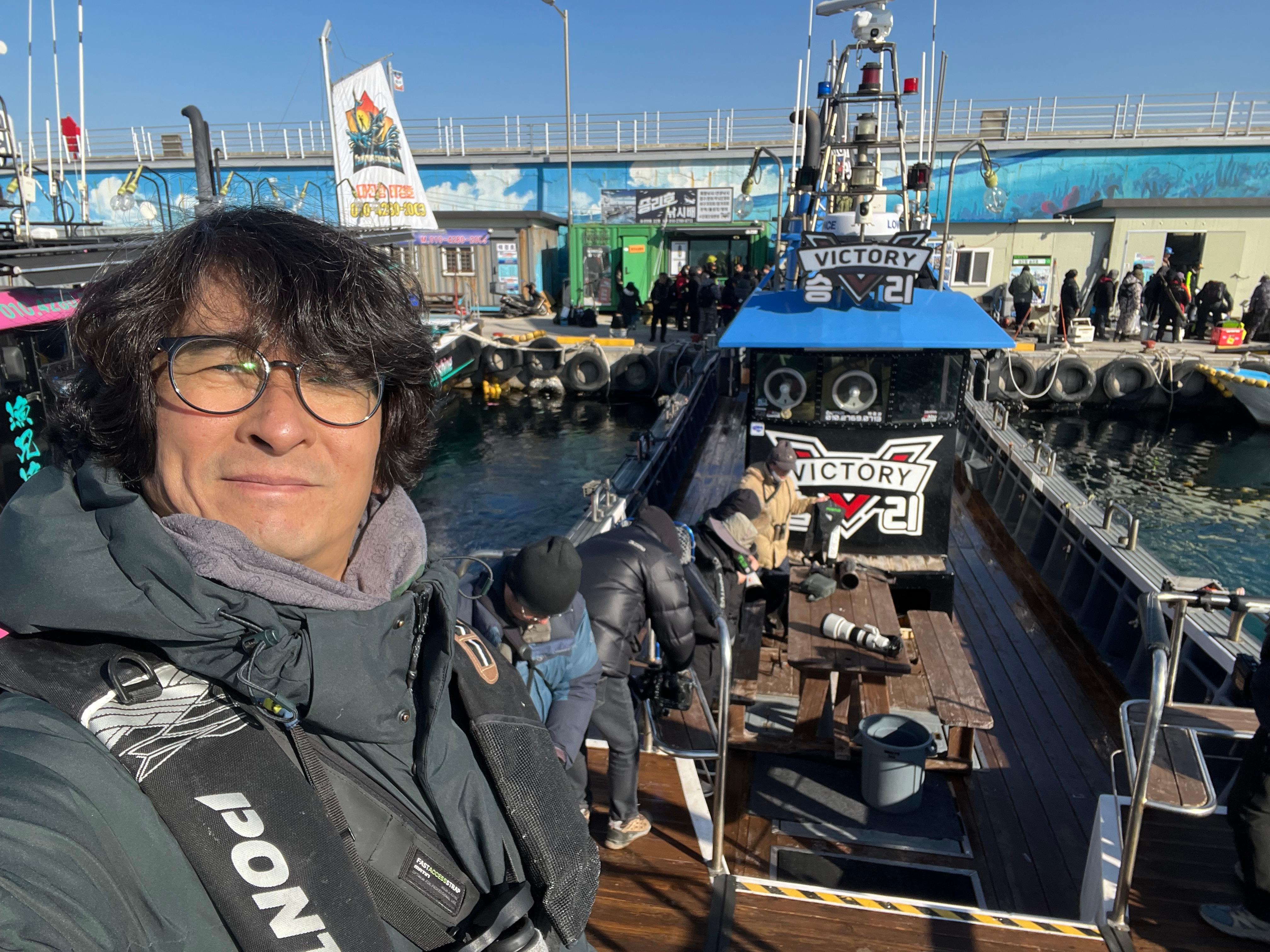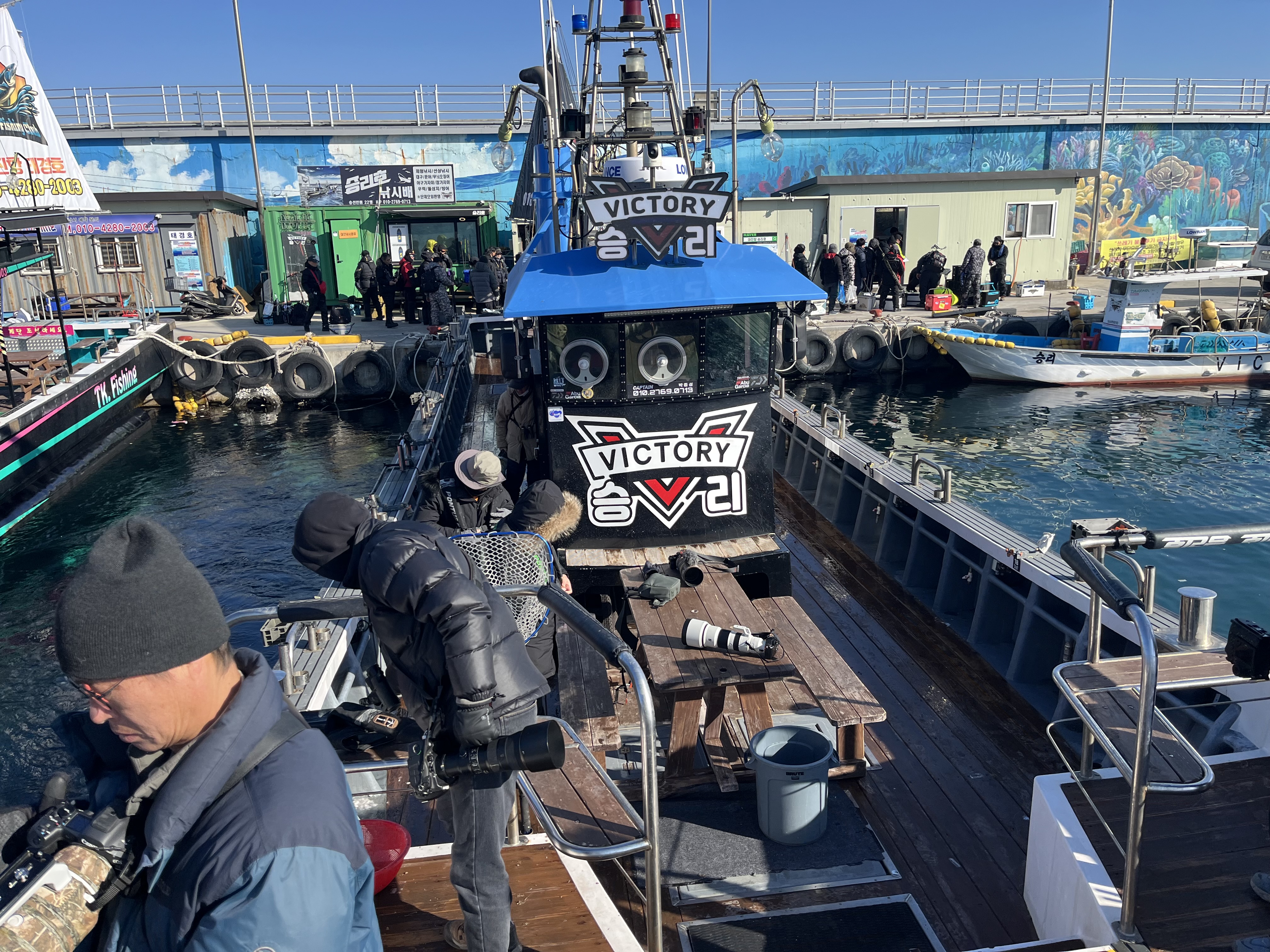 잠시 후 우리가 타고 바다 탐조를 나갈 승리호가 돌아왔다. 낚시꾼을 내려주고 바로 승선한다. 오늘은 어떤 새들을 만날까? 서로의 기대를 이야기하며 조용히 소란스러운 출항을 한다. 겨울 바닷새들이 가득한 바다를 기대하며~.