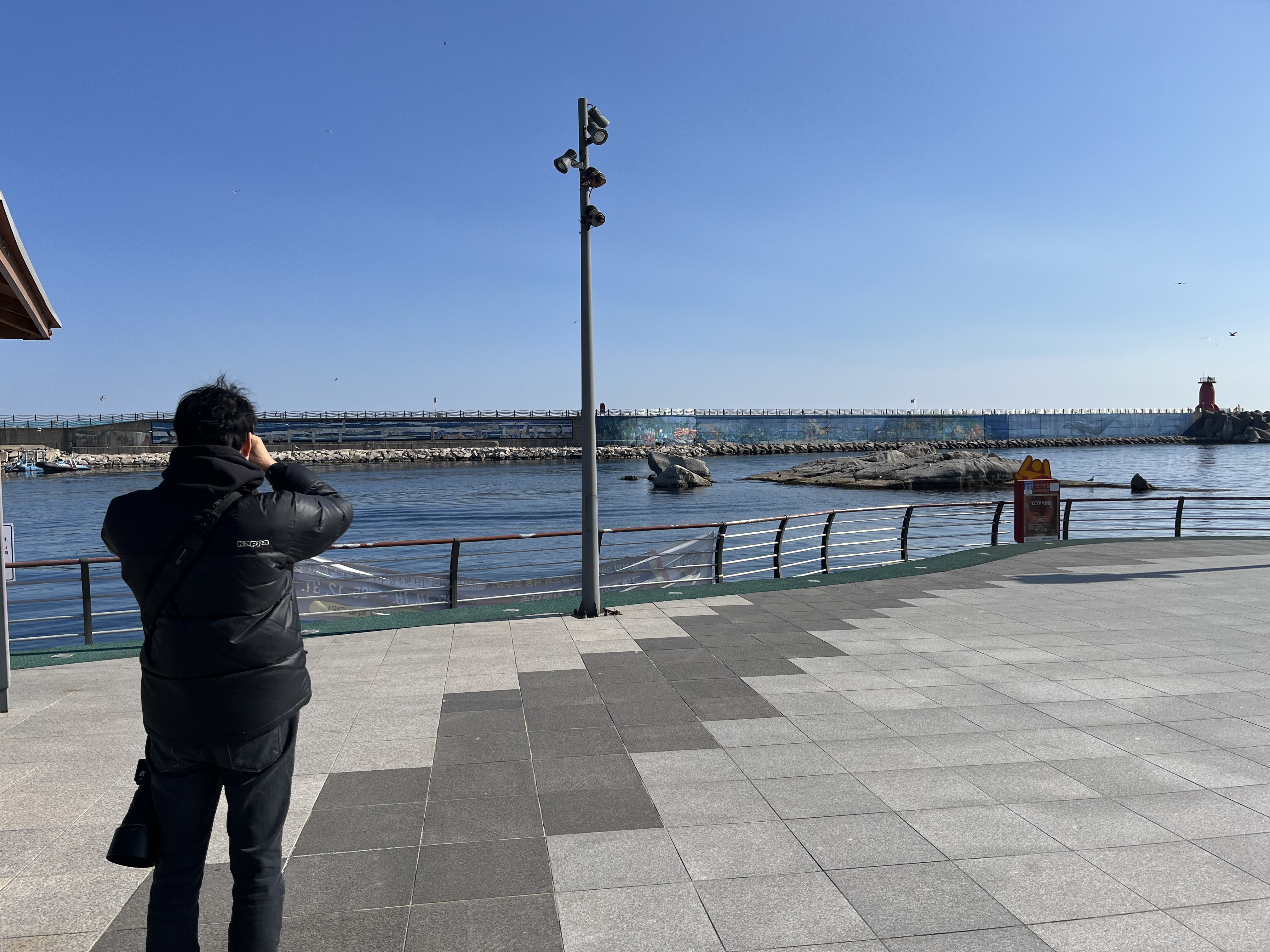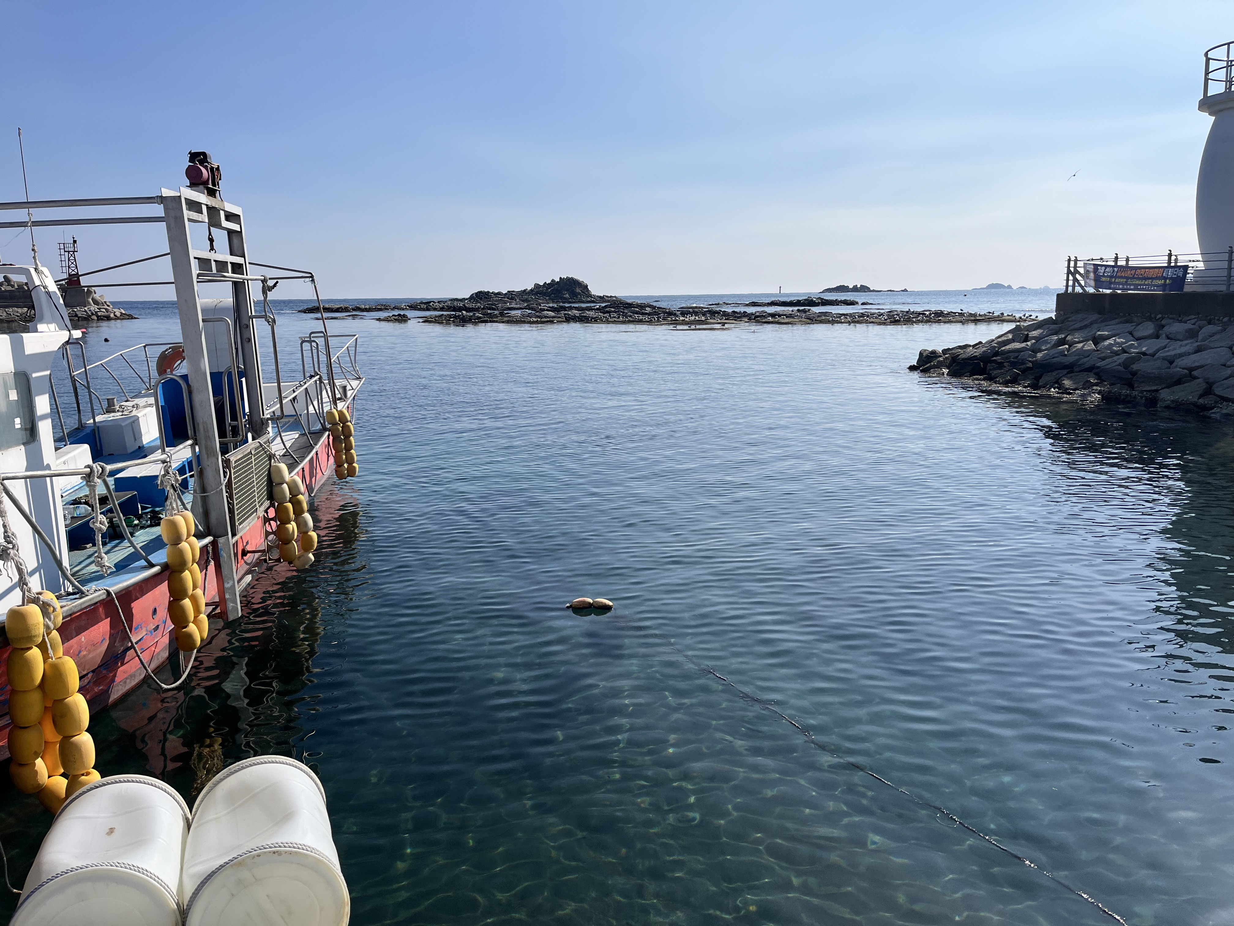 약속 시간보다 이르게 도착했다. 낚시를 나간 배는 아직 돌아오지 않았고 항구와 방파제 밖을 살펴본다. '흰뺨오리', '흰뺨검둥오리', '원앙', '재갈매기', '갈매기', '바다비오리', '괭이갈매기'가 먹이 찾기에 분주하다.