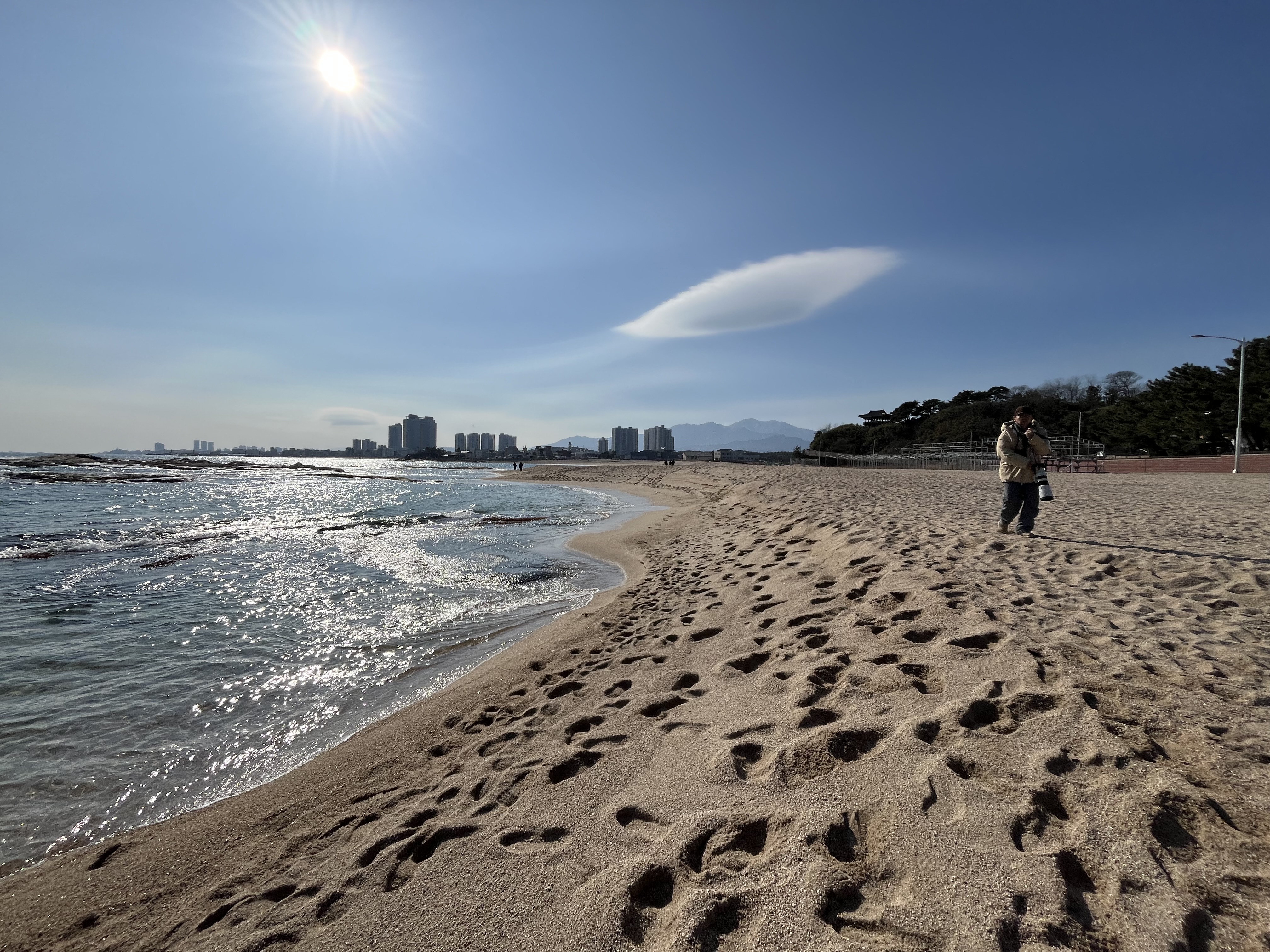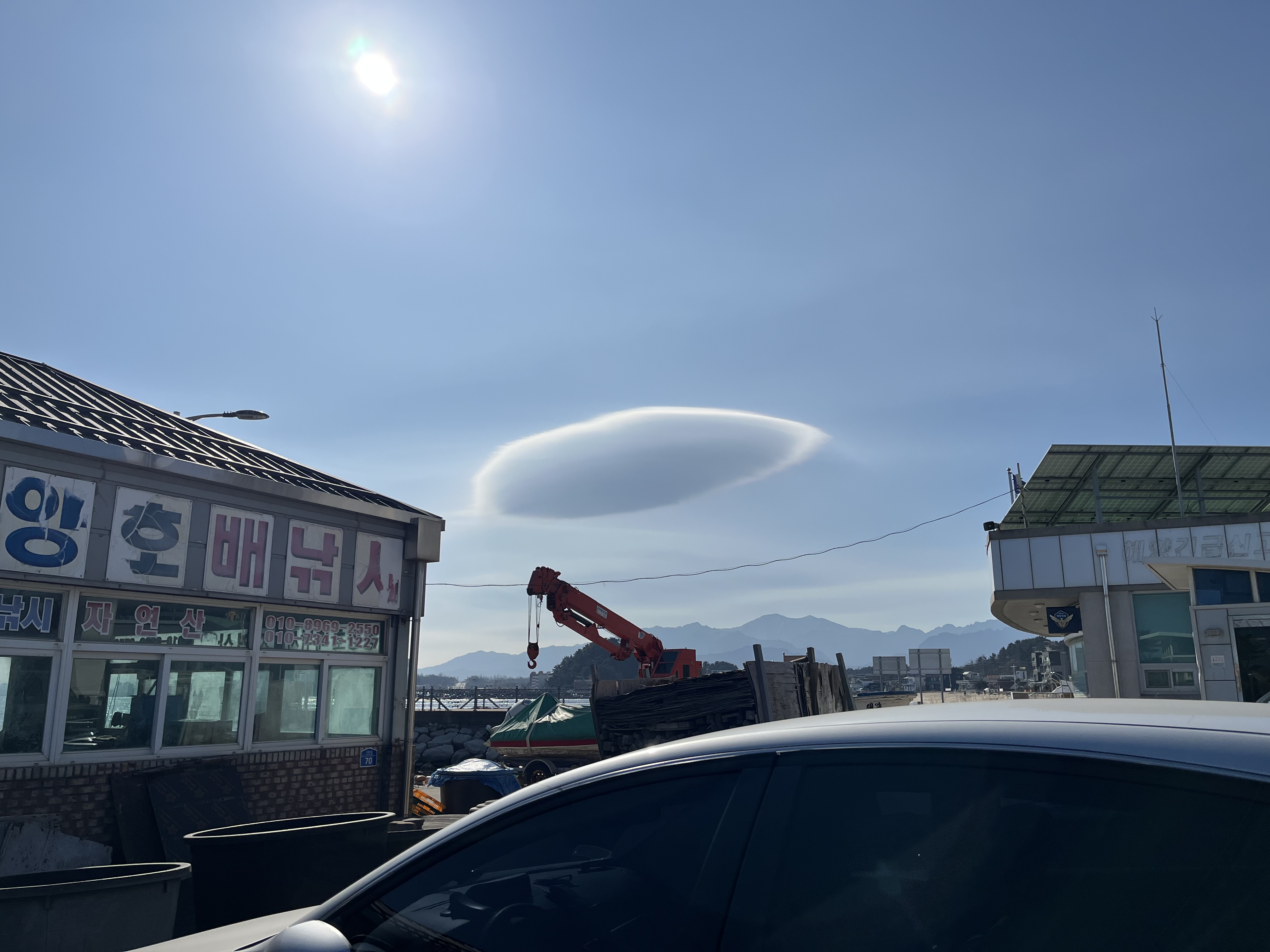 문암항을 들러 얼마 전까지 낚싯줄이 입에 걸려 항으로 들어온 '흰부리아비'가 아직 있나 살핀다. 없다. 삶을 계속 이어나가길 기원하고 문암의 바위를 살핀다. 새해 첫날 아내와 왔을 때 만난 '흑기러기' 두 마리는 아직 그곳에서 쉬고 있다. '세가락도요' 이십여 마리도 간조로 드러난 바위에서 먹이를 찾고 있다. 많은 갈매기류가 쉬고 있어 쌍안경으로 꼼꼼하게 살핀다. 이번 겨울엔 아직 '수리갈매기'를 만나지 못한 터라 한 마리 한 마리씩 살피던 중 바위에 날아와 앉는 '수리갈매기'를 볼 수 있었다. 함께한 누구는 Lifer를 하고 축하해주며 먼저 간 다른 이들을 또 불러온다. 하늘엔 UFO 같은 구름이 떠 있다. 거진읍에서 점심을 먹고 오후 배로 예약한 대진항으로 간다.