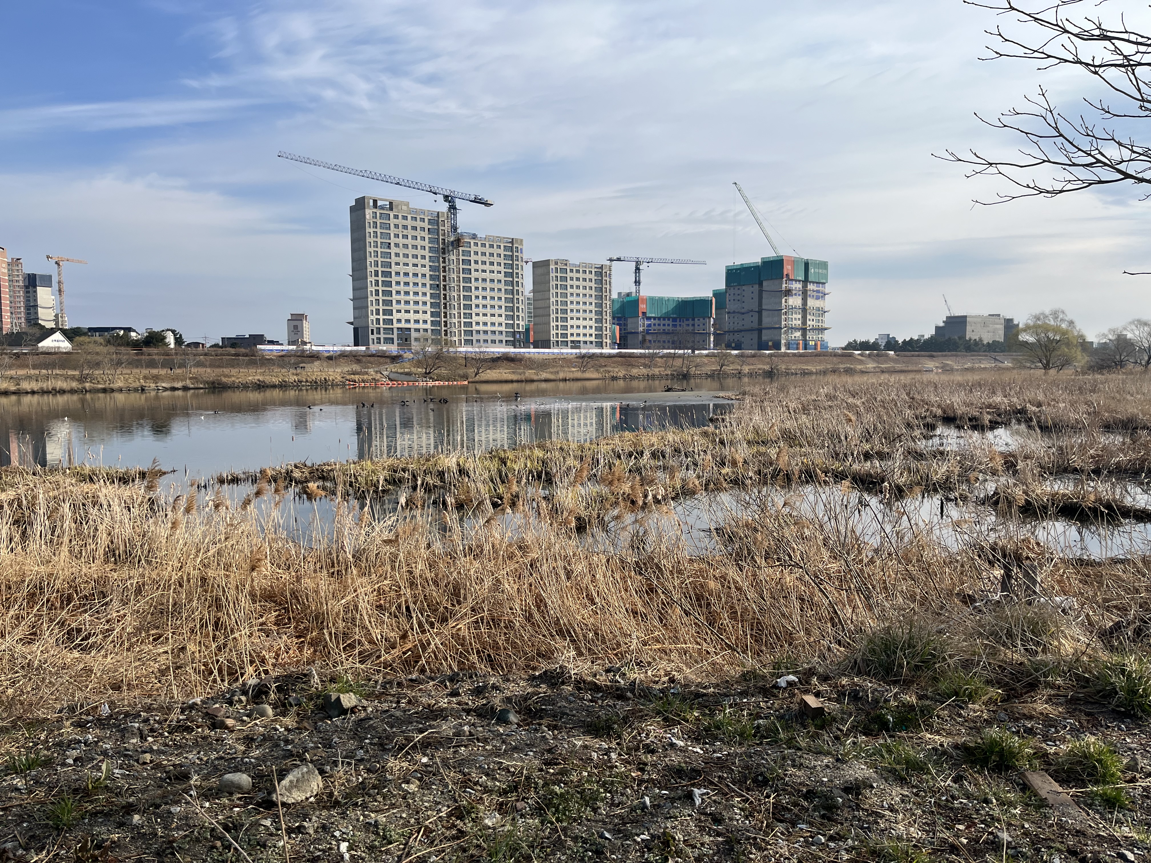 Smew(흰비오리), Common Merganser(비오리), Tufted Duck(댕기흰죽지), Northern Shoveler(넓적부리), Falcated Duck(청머리오리), Gadwall(알락오리), Eurasian Wigeon(홍머리오리), Eastern Spot-billed Duck(흰뺨검둥오리), Mallard(청둥오리), Northern Pintail(고방오리), Green-winged Teal(쇠오리), Little Grebe(논병아리), Red-necked Grebe(큰논병아리), Great Crested Grebe(뿔논병아리), Oriental Turtle Dove(멧비둘기), Common Moorhen(쇠물닭), Eurasian Coot(물닭), Far Eastern Curlew(알락꼬리마도요), Black-headed Gull(붉은부리갈매기), Black-tailed Gull(괭이갈매기), Common Gull(갈매기), Vega Gull(재갈매기), Mongolian Gull(한국재갈매기), Lesser Black-backed Gull(작은노랑발갈매기), Slaty-backed Gull(큰재갈매기), Black-throated Loon(큰회색머리아비), Pelagic Cormorant(쇠가마우지), Great Cormorant(민물가마우지), Great Egret(중대백로), Grey Heron(왜가리), Eastern Buzzard(말똥가리), Common Hoopoe(후투티), Common Kestrel(황조롱이), Oriental Magpie(까치), Rook(떼까마귀), Large-billed Crow(큰부리까마귀), Cinereous Tit(박새), Light-vented Bulbul(검은이마직박구리), Brown-eared Bulbul(직박구리), Vinous-throated Parrotbill(붉은머리오목눈이), White-cheeked Starling(찌르레기), Daurian Redstart(딱새), Eurasian Tree Sparrow(참새), White Wagtail(알락할미새), Rustic Bunting(쑥새).